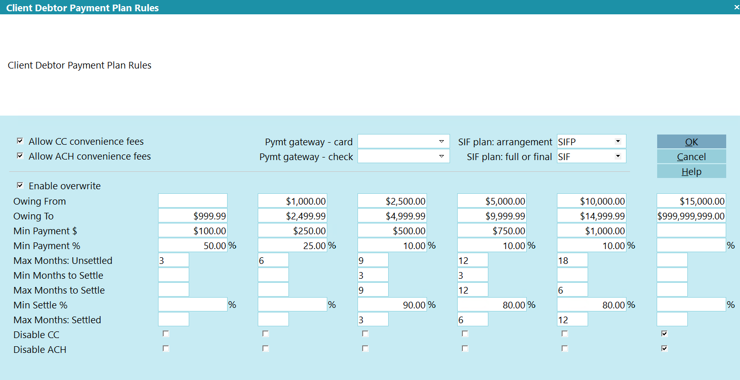 The remaining fields the Client Debtor Payment Plan Rules form are