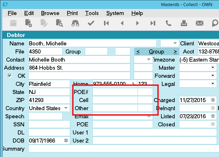 Now when you return to the Debtor form, you can see the label for the Cell Extension field.