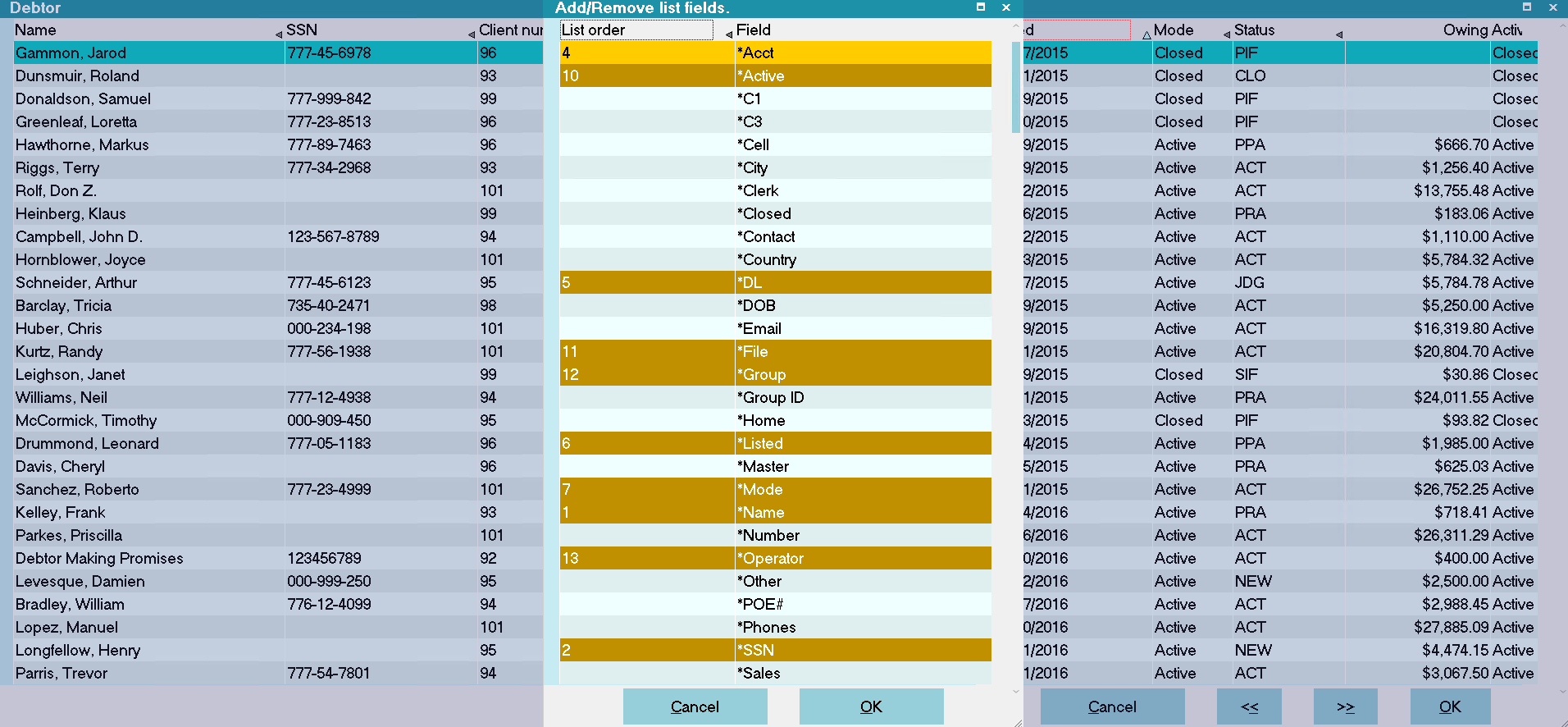 need in any order you want. Lists of Clients, Debtors, Transactions, Attachments, Statements and