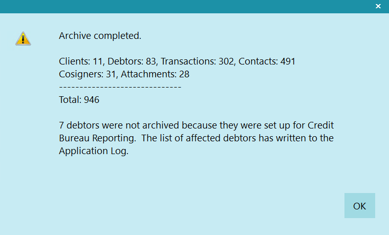 If a Debtor in your system is still being reported to the Credit Bureaus and you attempt to include