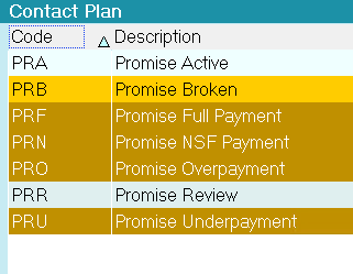 Overpayment, Underpayment, NSF Payment and Broken Promises each trigger a contact plan. These may