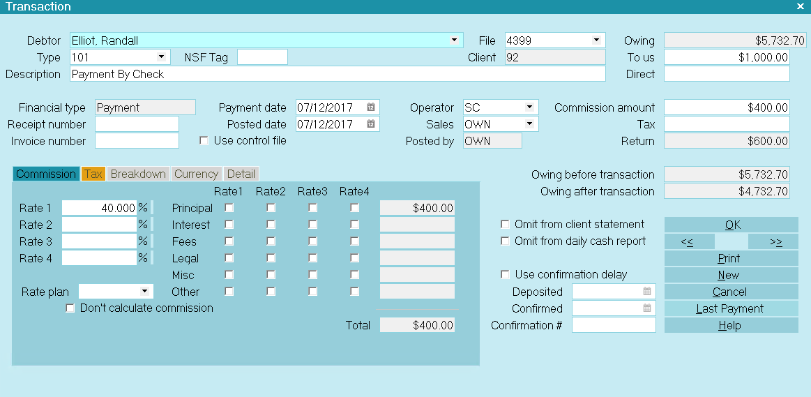 You can select a Transaction Type to use for promised payments. Values may be entered for evaluating